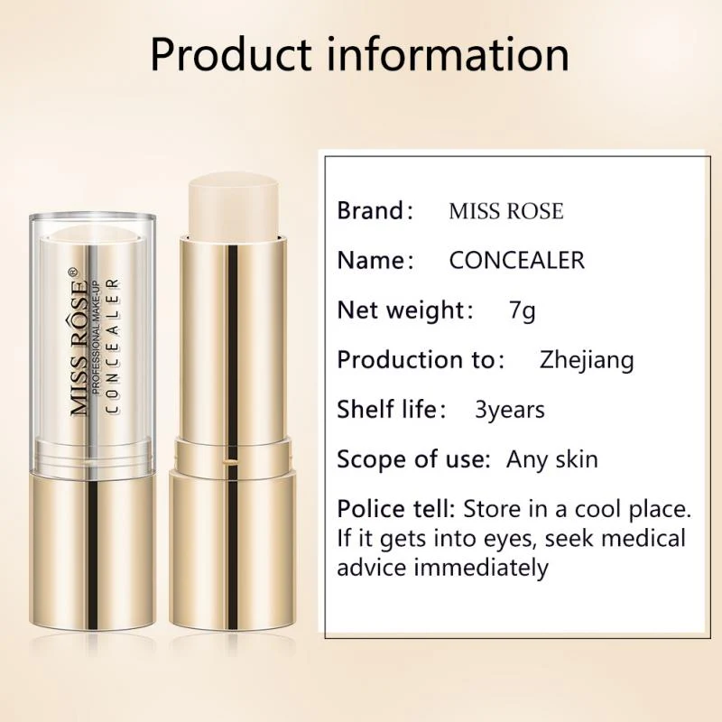 Secure the day with Miss Rose Makeup Full Coverage Concealer that helps to even out skin tone and conceal irregularities and blemishes.The stick shape is ideal for easy and quick application with precision. Infused with Moisture Blend moisturising agents to help keep skin soft, this medium coverage melts into the skin and is designed to last.